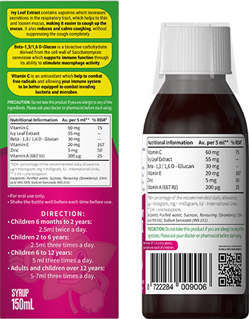 Each pack contains 100ml of mary ivy liquid in PET bottle with measuring cup for exact dose administration.
