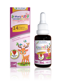 MaryKIDS+ liquid provides the essential nutrients that typically meet the nutritional requirements (apart from the normal diet) of growing kids. It promotes growth by supplementing the nutritional deficiencies and optimizing the biological needs of cells and tissue. Vitamins-B are essential cofactors in the normal and proper metabolism of ingested foods. It helps release energy required for growth and other various activities of life. Vitamins A, C & E have have antioxidant properties and boost immunity. Vitamin D regulates the calcium & phosphorous levels in the body and promotes bone mineralization and bone formation. It also has immuno-modulatory roles and Iron is crucial for increasing mental alertness and attention span. Magnesium is an essential component of nucleic acids and many enzymes involved in metabolic process. Zinc and Magnesium are essential components of nucleic acids and many enzymes involved in metabolic process. L-lysine is an essential amino acid that helps in the formation of proteins.